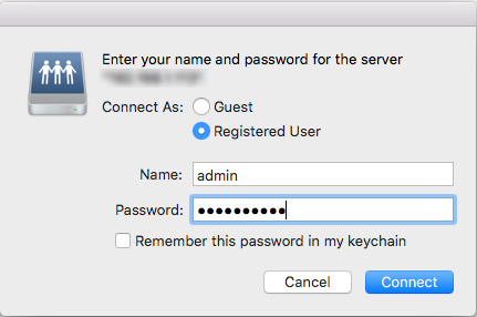 You will be prompted to enter your Name and Password on the following screen. Please use the login information for your NAS here and press Connect.