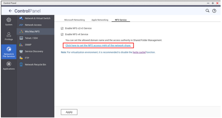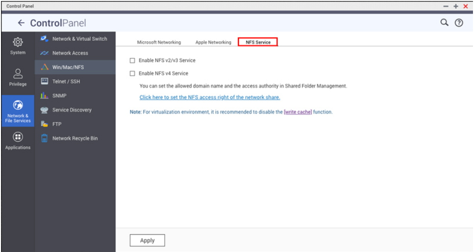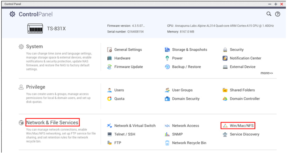 1. Please open Control Panel and navigate to Network & File Services > Win/Mac/NFS