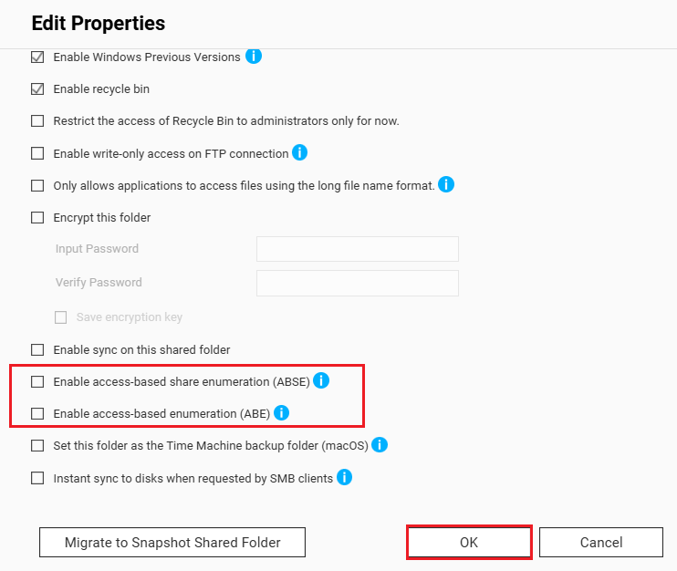 Disable ABE and ABSE on Your NAS