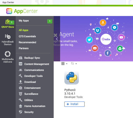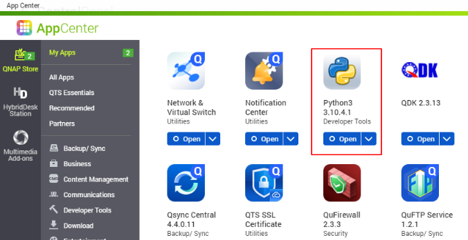 1. Download and install Python3 in App Center (if it is not installed yet)