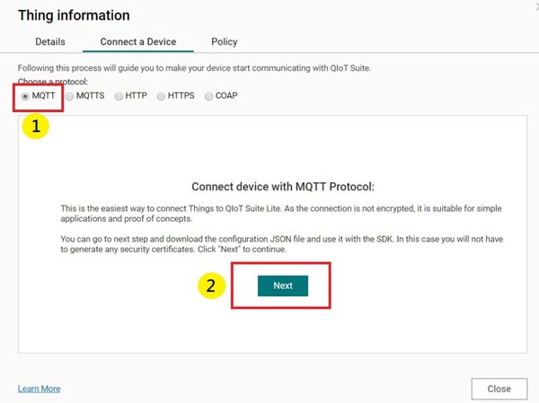 - 选择“MQTT”,并单击“Next”(下一步)。