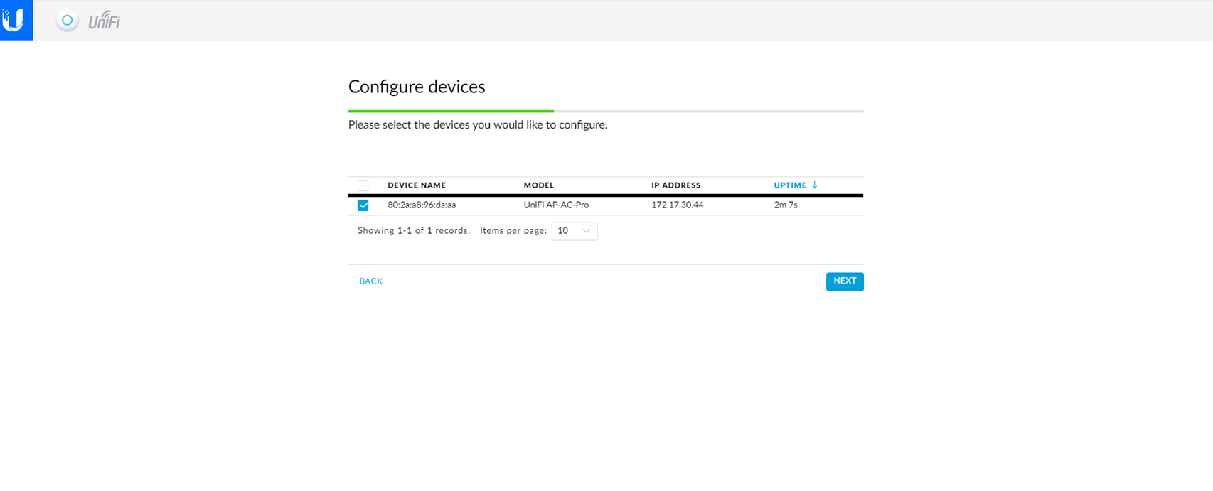 - 选择要配置的设备,并与 UniFi 控制器容器一起使用。
