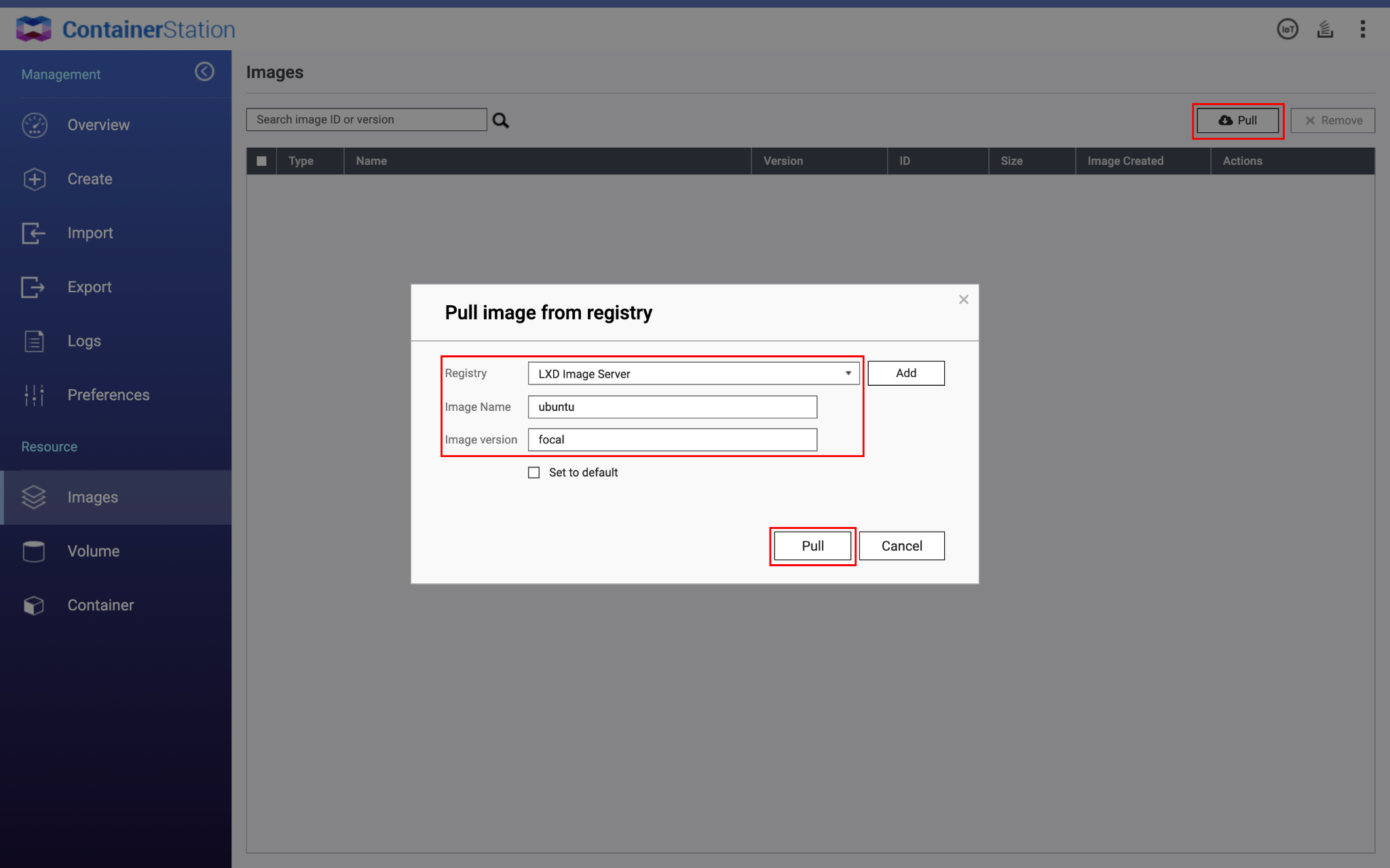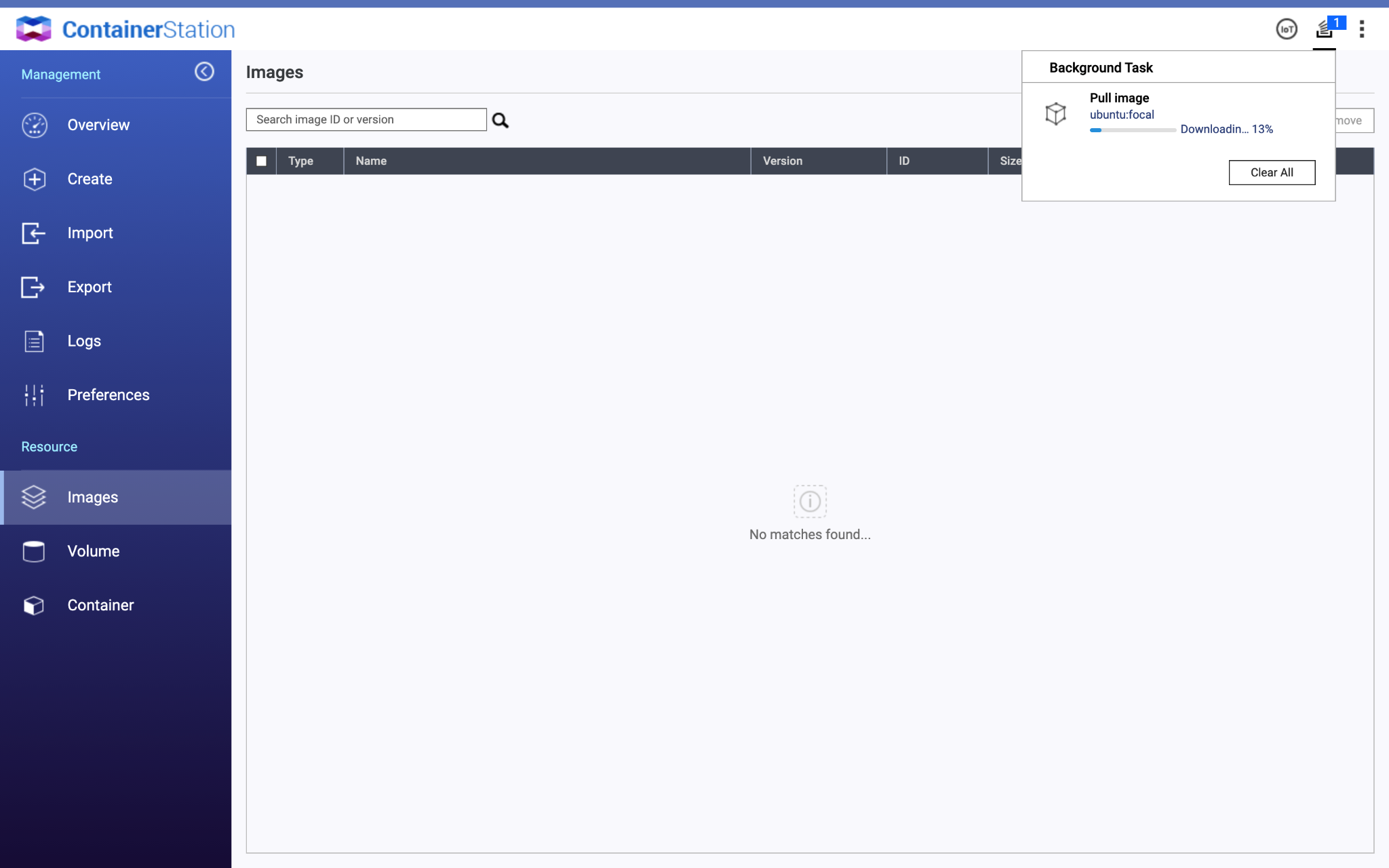 此时将下载 LXD 映像作为后台任务。下载完成后,LXD 映像即出现在映像列表中。