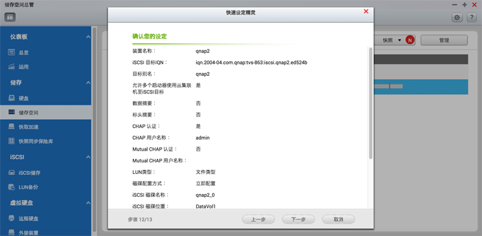 2. 根据所需信息来建立iSCSI目标。
