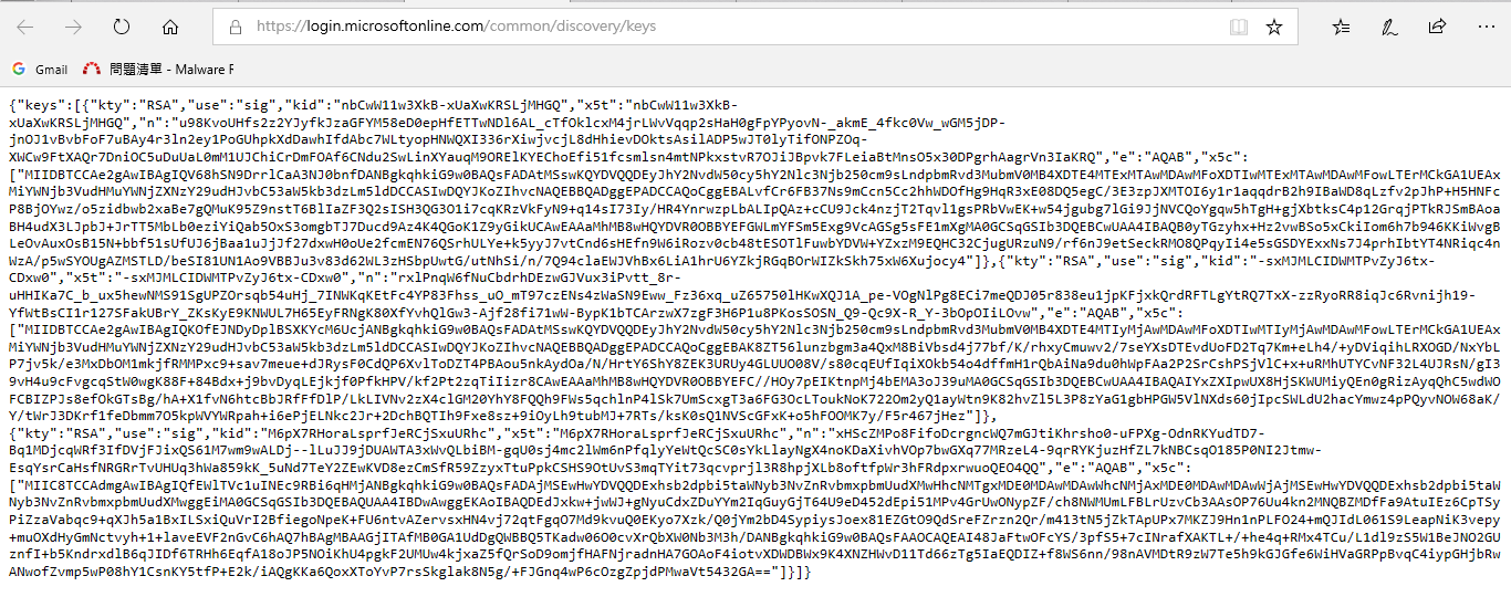 - 转到 https://login.microsoftonline.com/common/discovery/keys