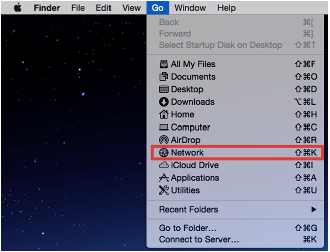 a)至Mac桌面上,选择[Finder]>[前往]>[网络]。