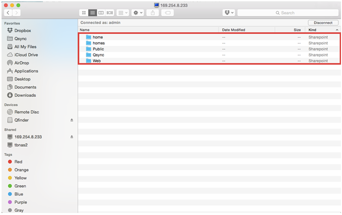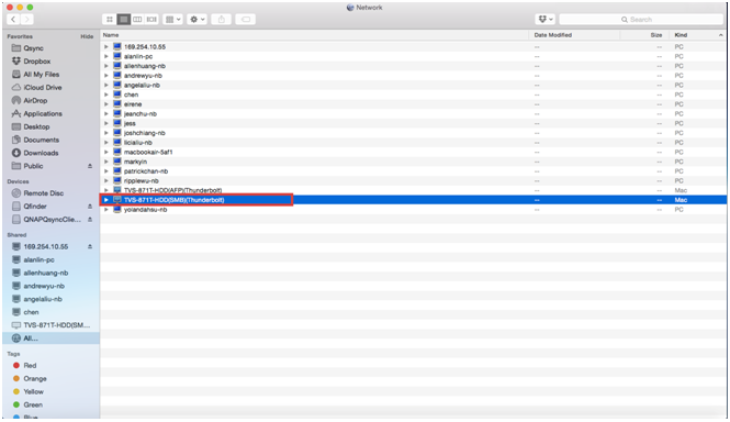 2. 利用Mac内的Bonjour网络服务来连至您的Turbo NAS以进行文件存取。