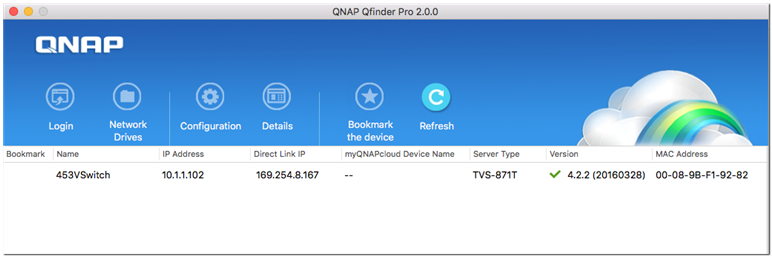 1. 您可以利用Qfinder Pro来开启您Turbo NAS的登入页面。 (注:Qfinder Pro为QNAP所开发的小工具,可供您在Windows、Mac及Linux计算机上快速搜索、安装,及存取局域网内的 Turbo NAS。 下载连结请参阅: https://www.qnap.com/i/cn/utility/)