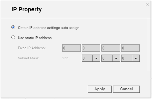 4. 接着,您可以设定自动取得IP、或是手动设定IP地址。 (注:若您利用iSCSI、NFS、或其他网络服务来挂载网络驱动器机,则此处建议以手动方式设定IP地址来确保联机成功。)