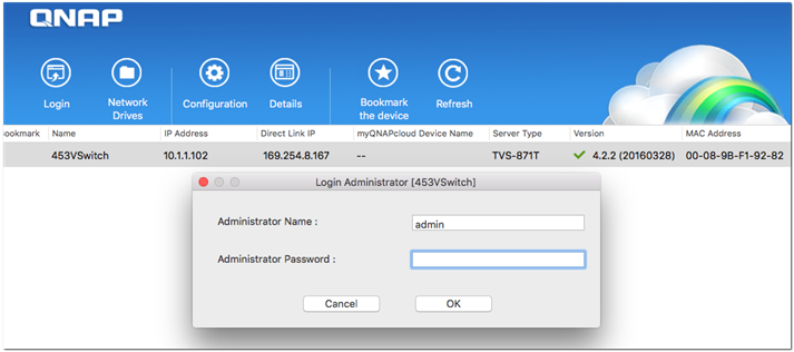 结束之后,您可在浏览器中输入您的Thunderbolt地址来登录NAS。