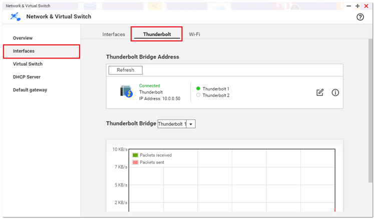 首先,以管理者账号登录NAS。切换至[主菜单]>[网络与虚拟交换机 Network & Virtual Switch]>[网络适配器]之后,请点击[Thunderbolt]。