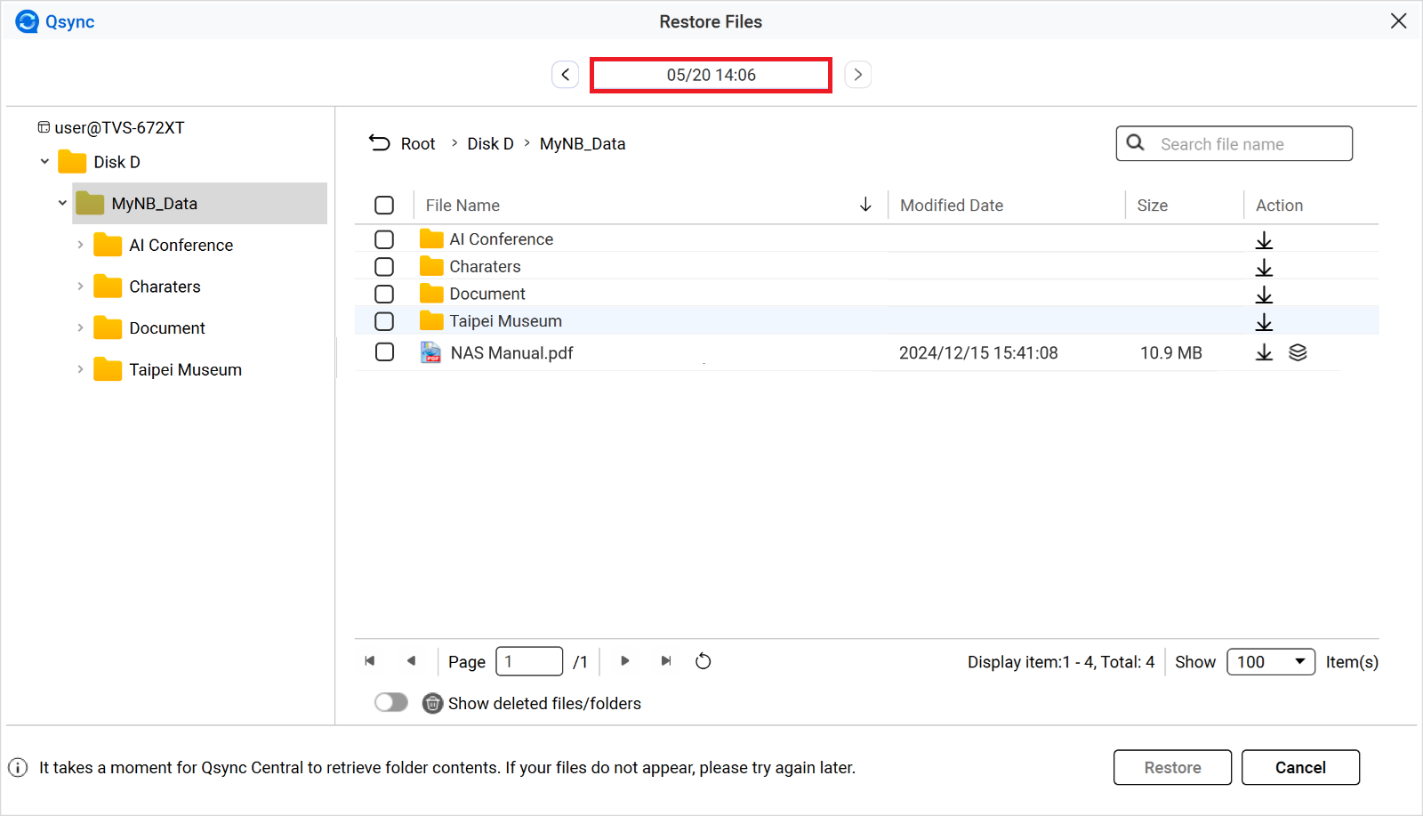 2 | 访问 File Station 网页上的 Qsync 备份文件夹。 | 单击 ![]() 此时会打开 File Station 网页上的 Qsync 备份文件夹。 |