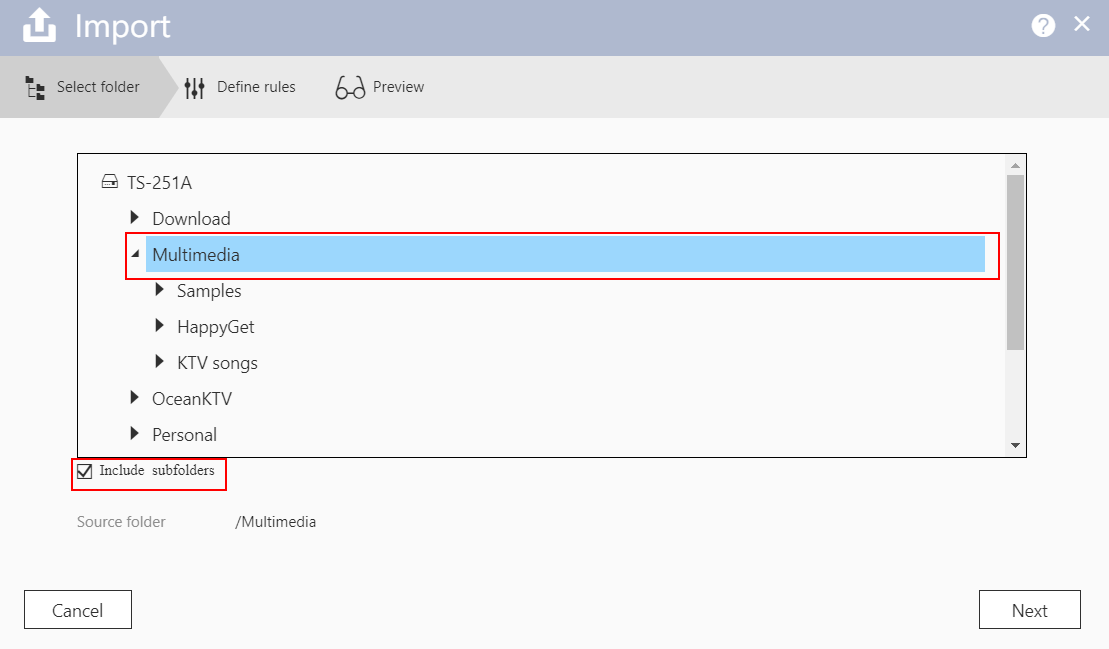 - (可选)选中“Include subfolders”(包含子文件夹)。