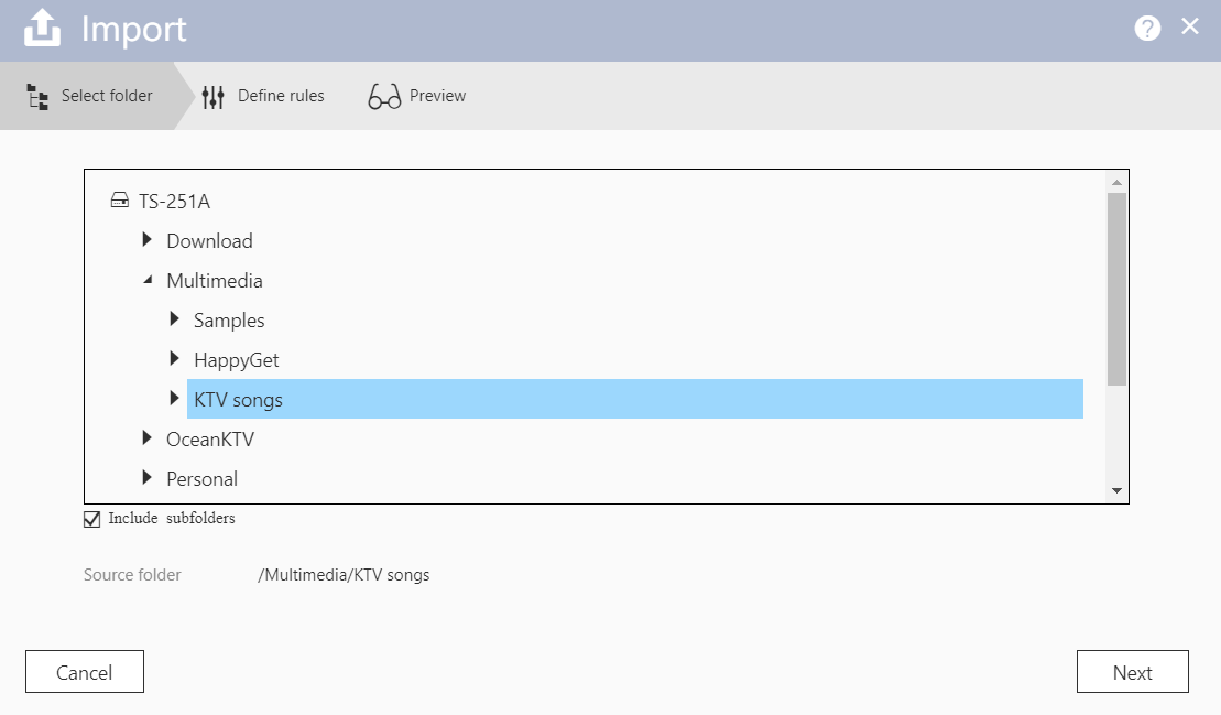 - Use folder name(使用文件夹名称):选中此选项时,OceanKTV 在此列中使用导入的歌曲所在文件夹的名称。您需要指定所选文件夹的位置。