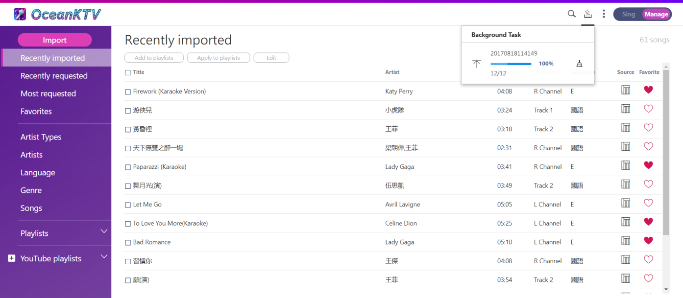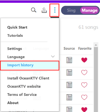 注意:OceanKTV 不会重复导入相同的歌曲。