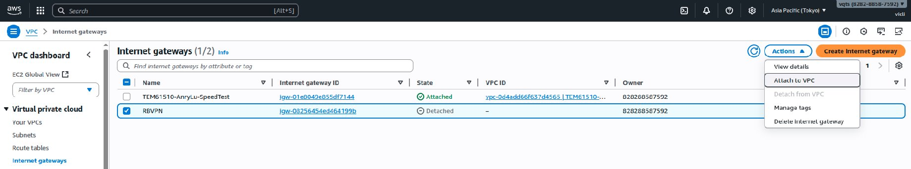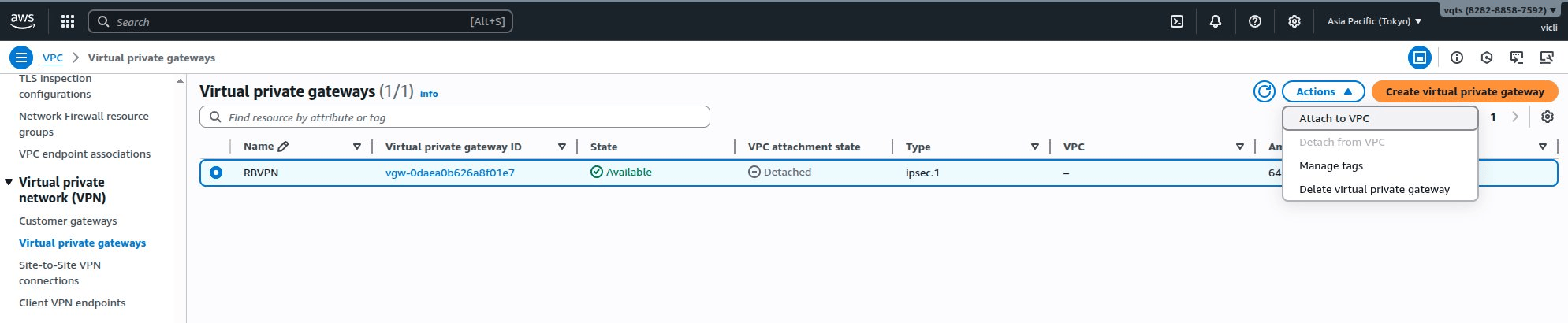 AWS attaches the configured virtual private gateway to the QuWAN VPC.