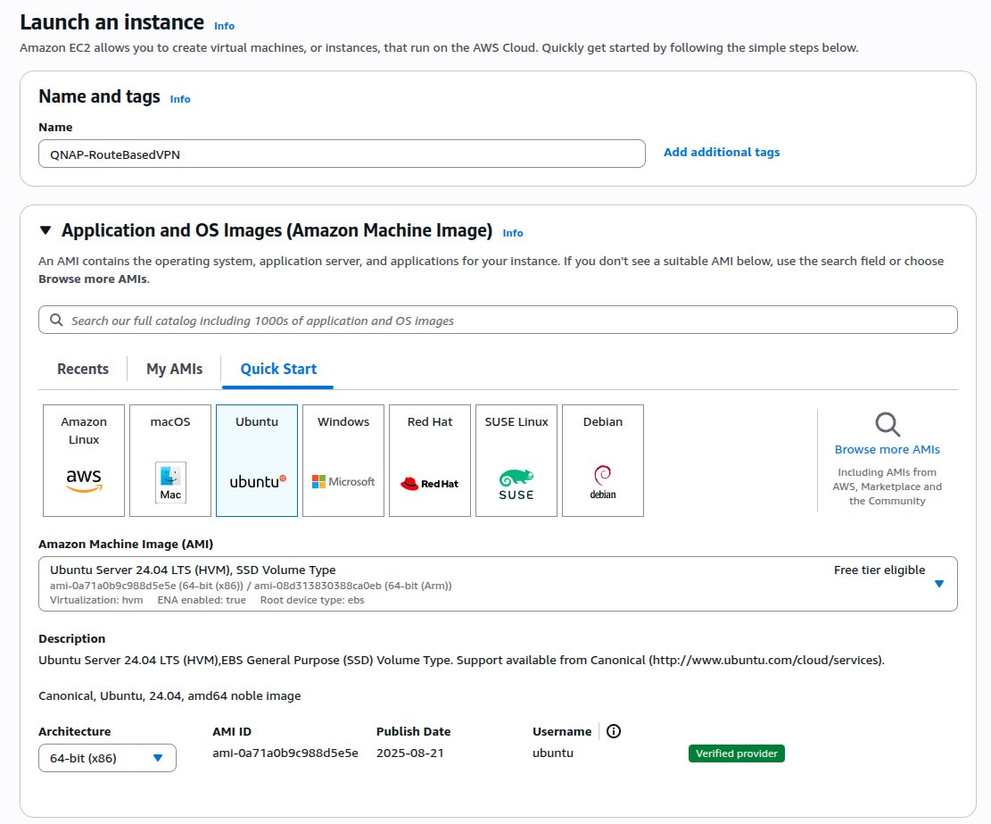 - Under Application and OS Images (Amazon Machine Image), click Ubuntu.