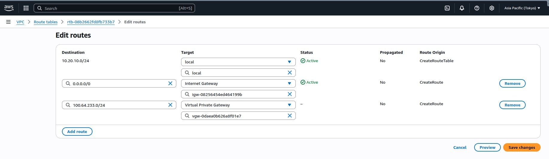 - Select the pre-configured virtual private gateway from the drop-down menu.
