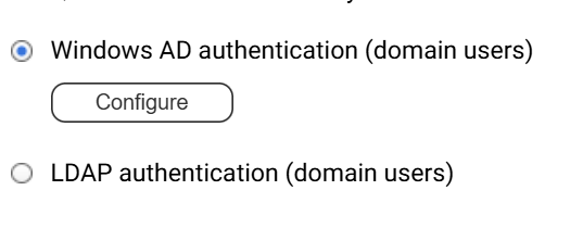 2. Select either Windows AD authentication (domain user) or LDAP authentication (domain user), and then click Configure.