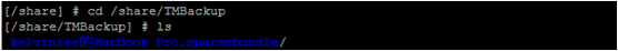 Find the TimeMachine backup data from the list.cd .. cd /share/TMBackup ls
