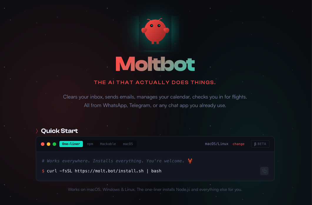 OpenClaw (previously known as Clawdbot and Moltbot) is a third-party automation and productivity tool designed to run as a long-running “agent” that can execute tasks on your behalf (for example, managing messages, emails, calendars, and running local commands depending on configuration). The official project positioning emphasizes “an AI that actually does things,” typically by connecting chat channels to a local runtime that can interact with your system.