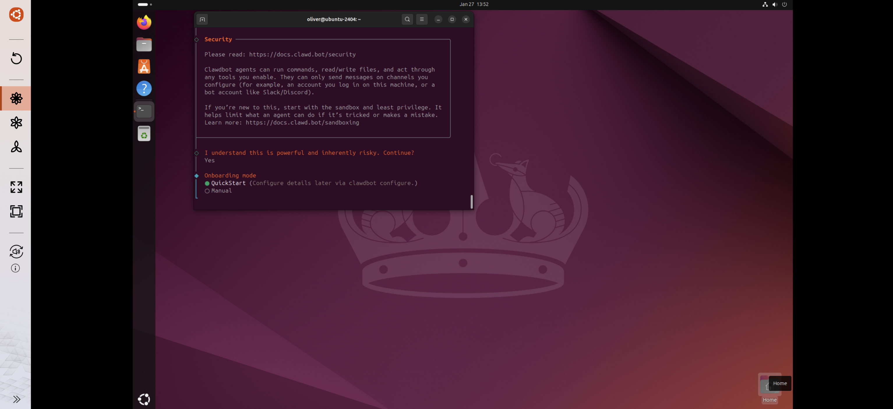 较佳实践: OpenClaw 适用于优异或实验性使用。我们建议在启用长时间运行或无人值守操作之前,始终审查安全影响。了解 QNAP 如何在 Ubuntu Linux Station 中确保用户数据安全性,以及您如何进一步增强数据安全性。