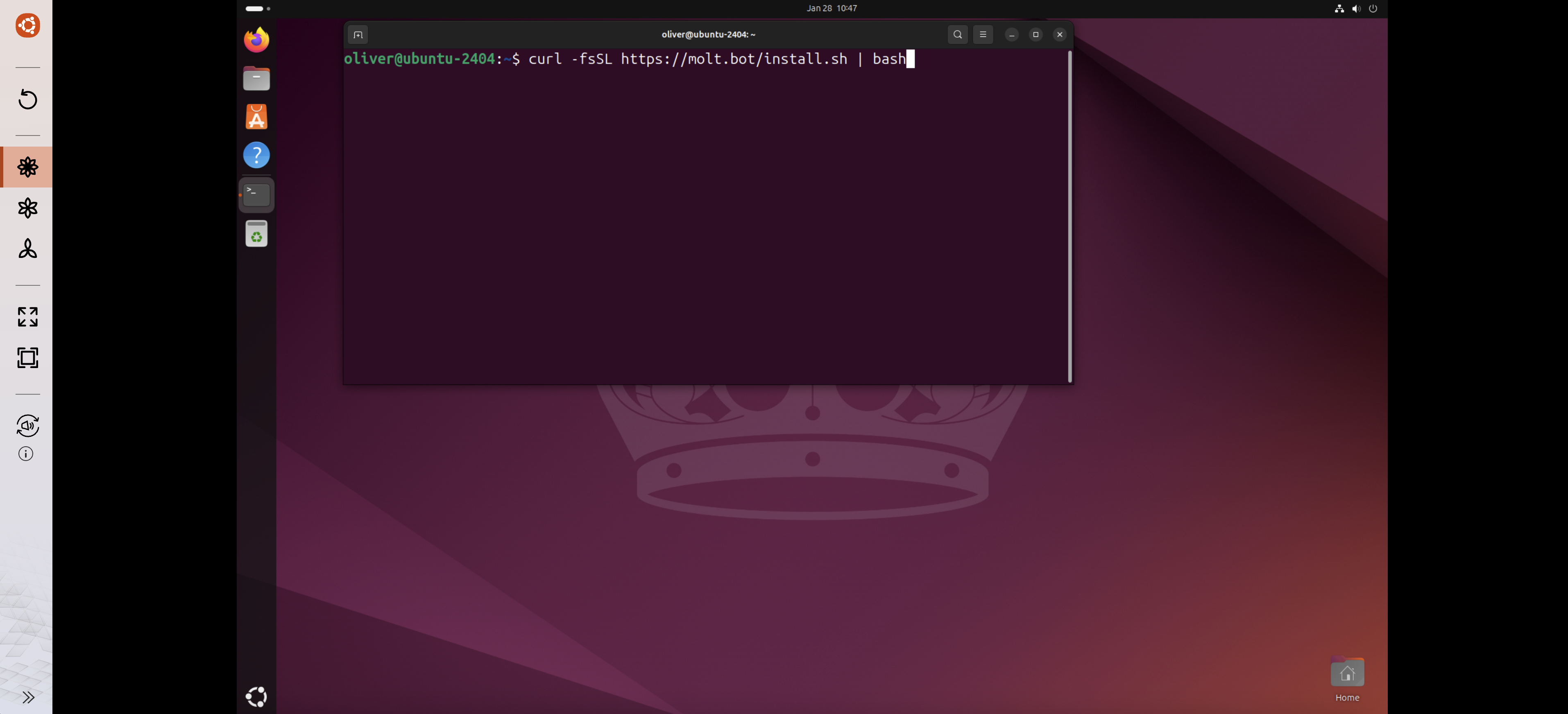 In the terminal, enter the installation command provided on the OpenClaw website: