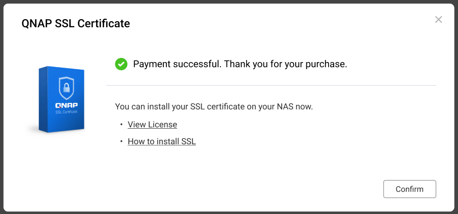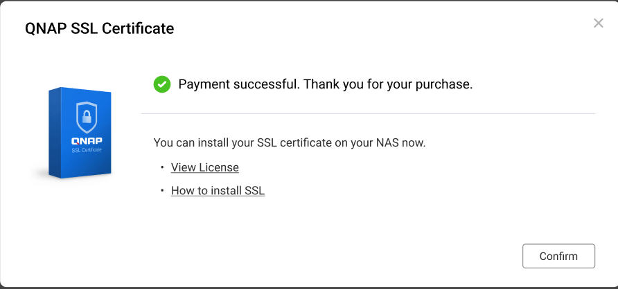 After purchasing an SSL certificate using your QNAP ID, you can install the certificate directly on your NAS.