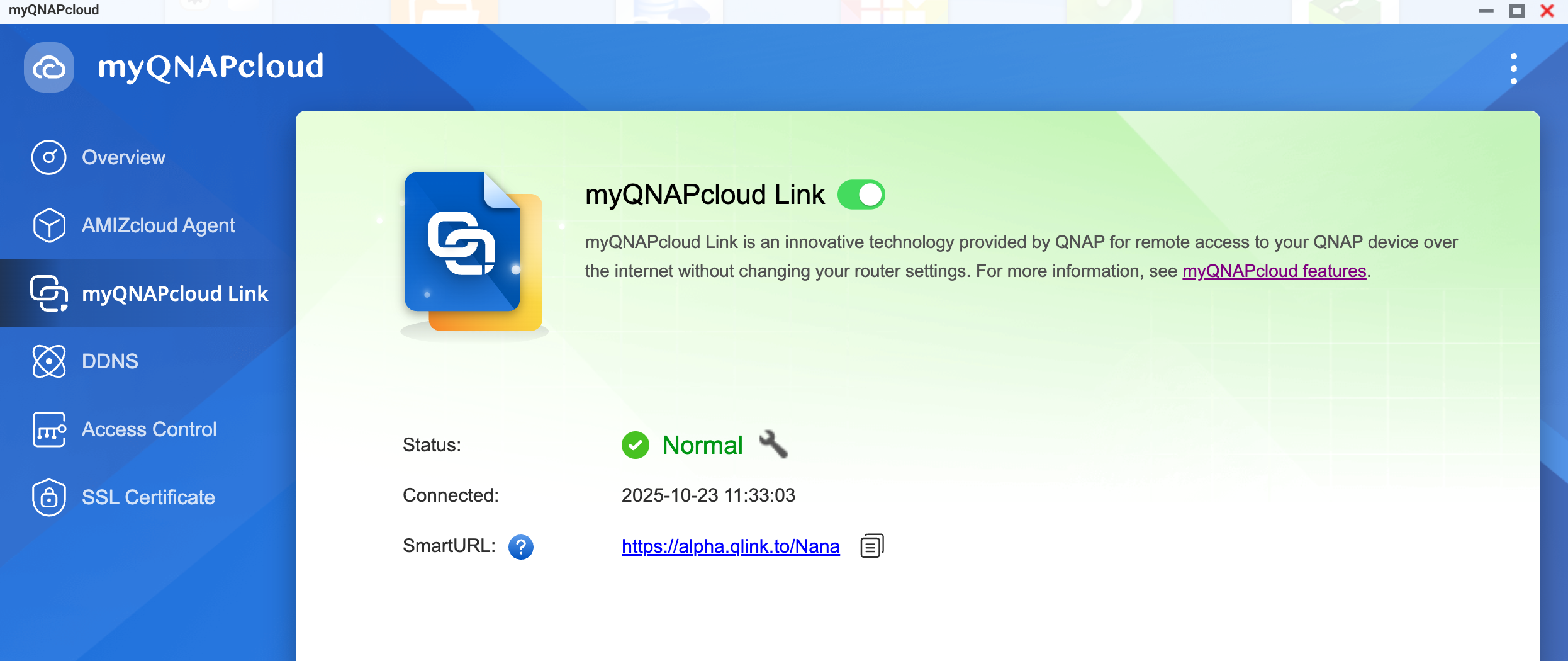- Enable myQNAPcloud Link. Ensure that the status of myQNAPcloud Link is normal.