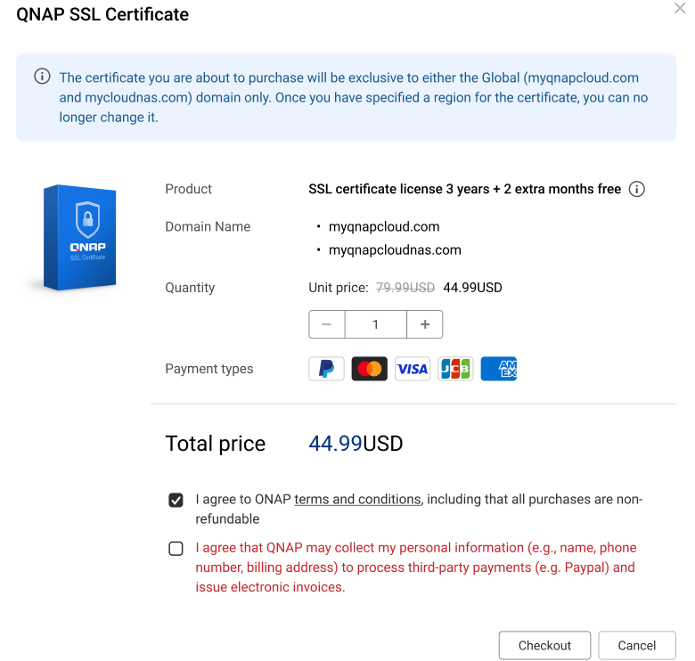 Purchase from the myQNAPcloud website