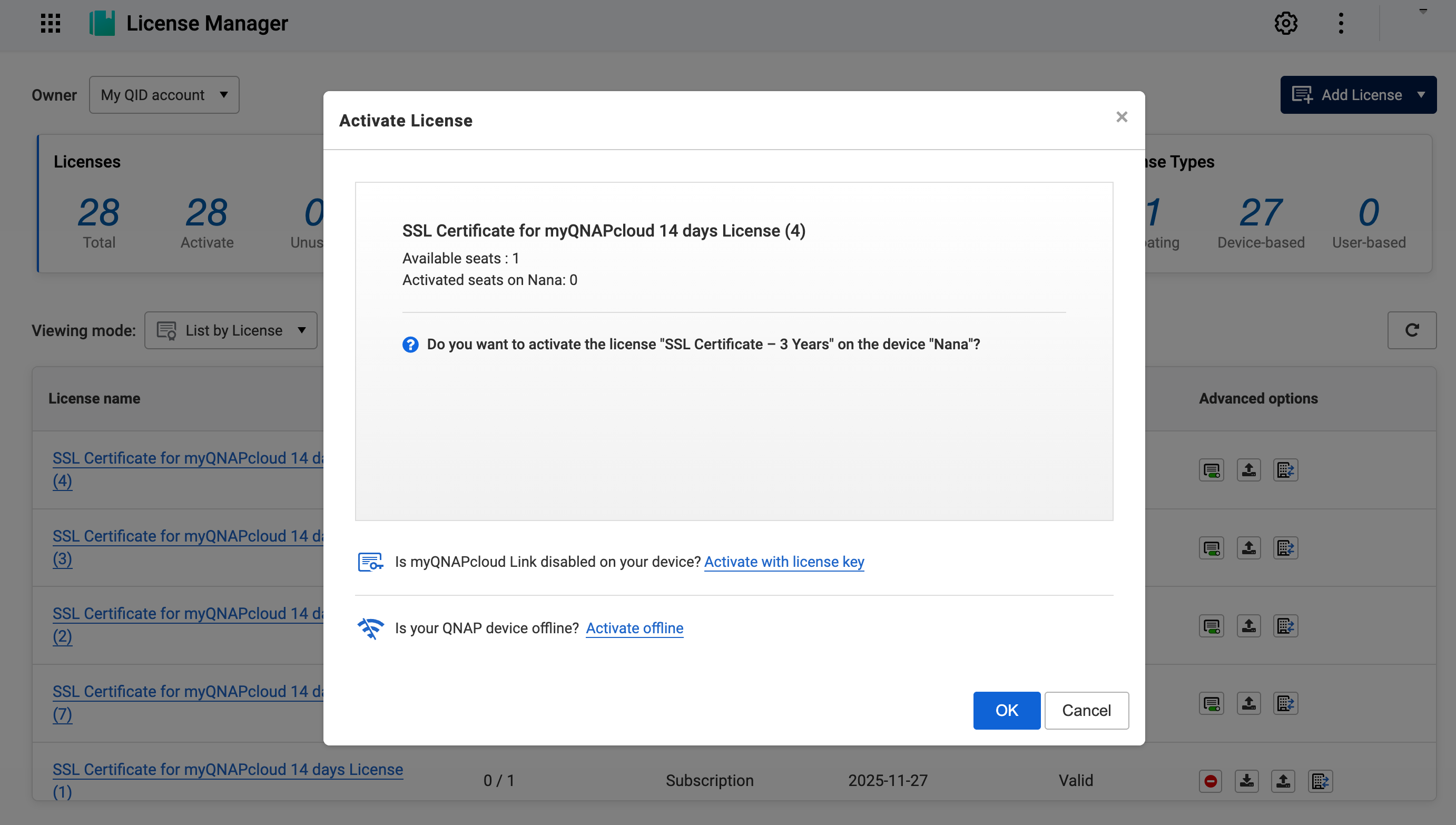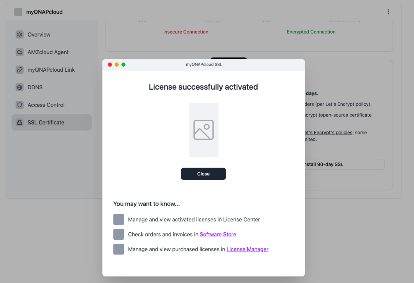 Note that you must enable myQNAPcloud Link before activating an SSL certificate in License Manager: