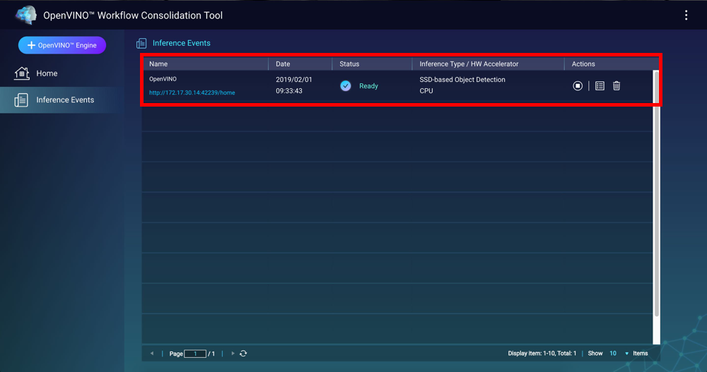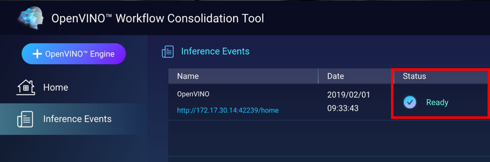 OWCT 即会创建推理引擎并将其显示在“Inference Events”(推理事件)屏幕上。