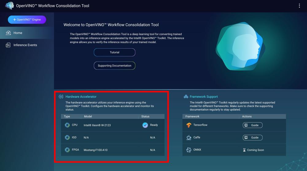 OpenVINO™ Workflow Consolidation Tool (OWCT) 是一款深度学习工具,用于将训练模型转换成由 Intel® Distribution of OpenVINO™ 工具包加速的推理引擎。通过推理引擎,您可以验证训练模型的推理结果。