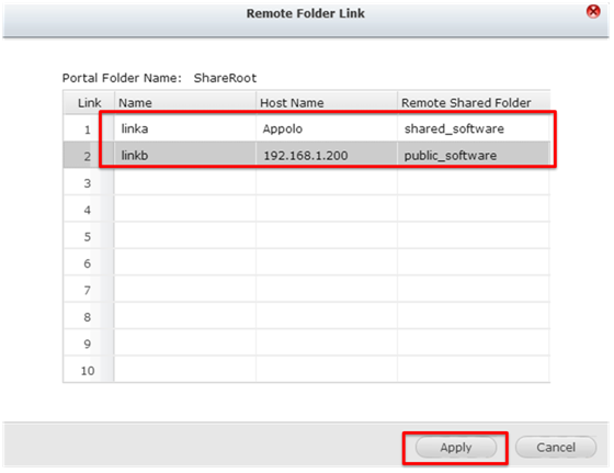 Portal Folder Name: ShareRoot Link name: linka: link to the share folder on host A linkb: link to the share folder on host B |