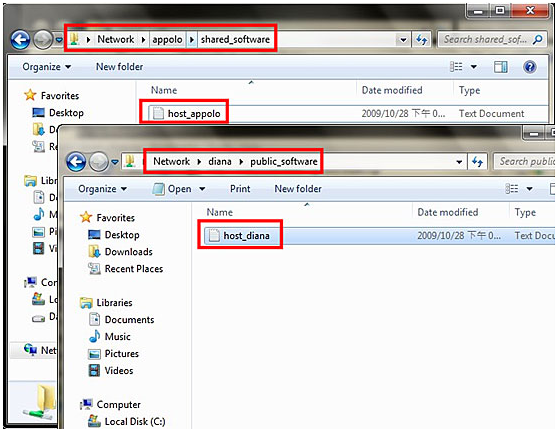 To verify the configuration is successful, we create a plain text file in the share folder on each host, Appolo and Diana. Let’s set the file name as "host_appolo.txt" on host Appolo and "host_diana.txt" on host Diana.