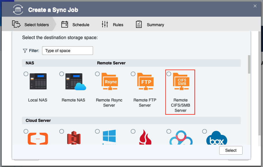 Alternatively, you can change the HBS job to use "Remote CIFS/SMB server" as the destination without recreating the storage pools/volume on the destination NAS. Follow these steps: