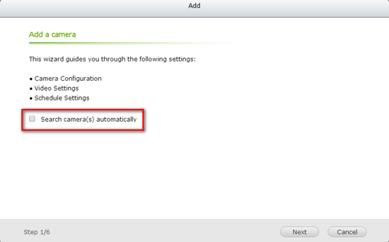 请取消勾选[自动搜寻摄影机]然后按[下一步]。