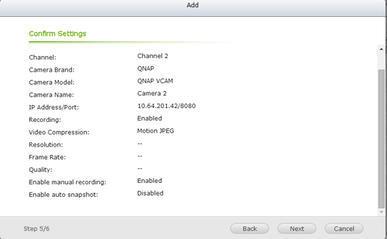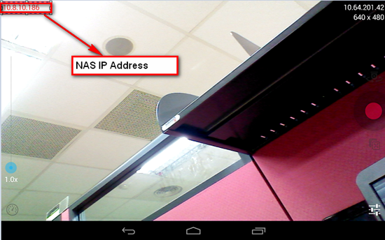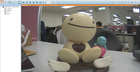 至此,您已将网络摄影机新增至视频监控中心。您可以移至Vcam监控页面来观看监控画面。您可以在画面左上角观察到NAS的网络地址。如果画面左上角没有显示NAS的网络地址,代表联机没有建立成功,请再确认联机及网络状况。