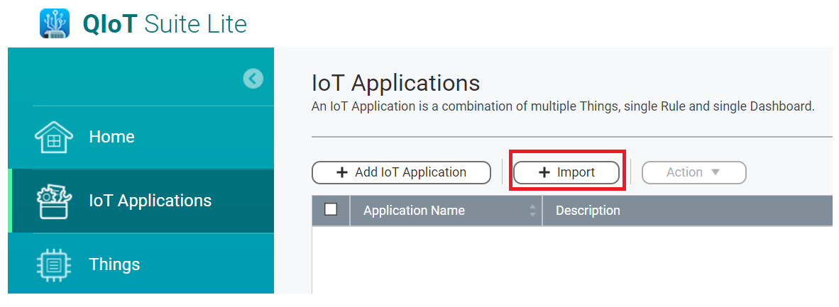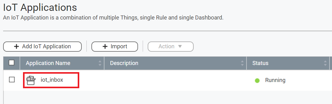 - 在 IoT 应用程序面板中导入“iot_inbox.json”文件。