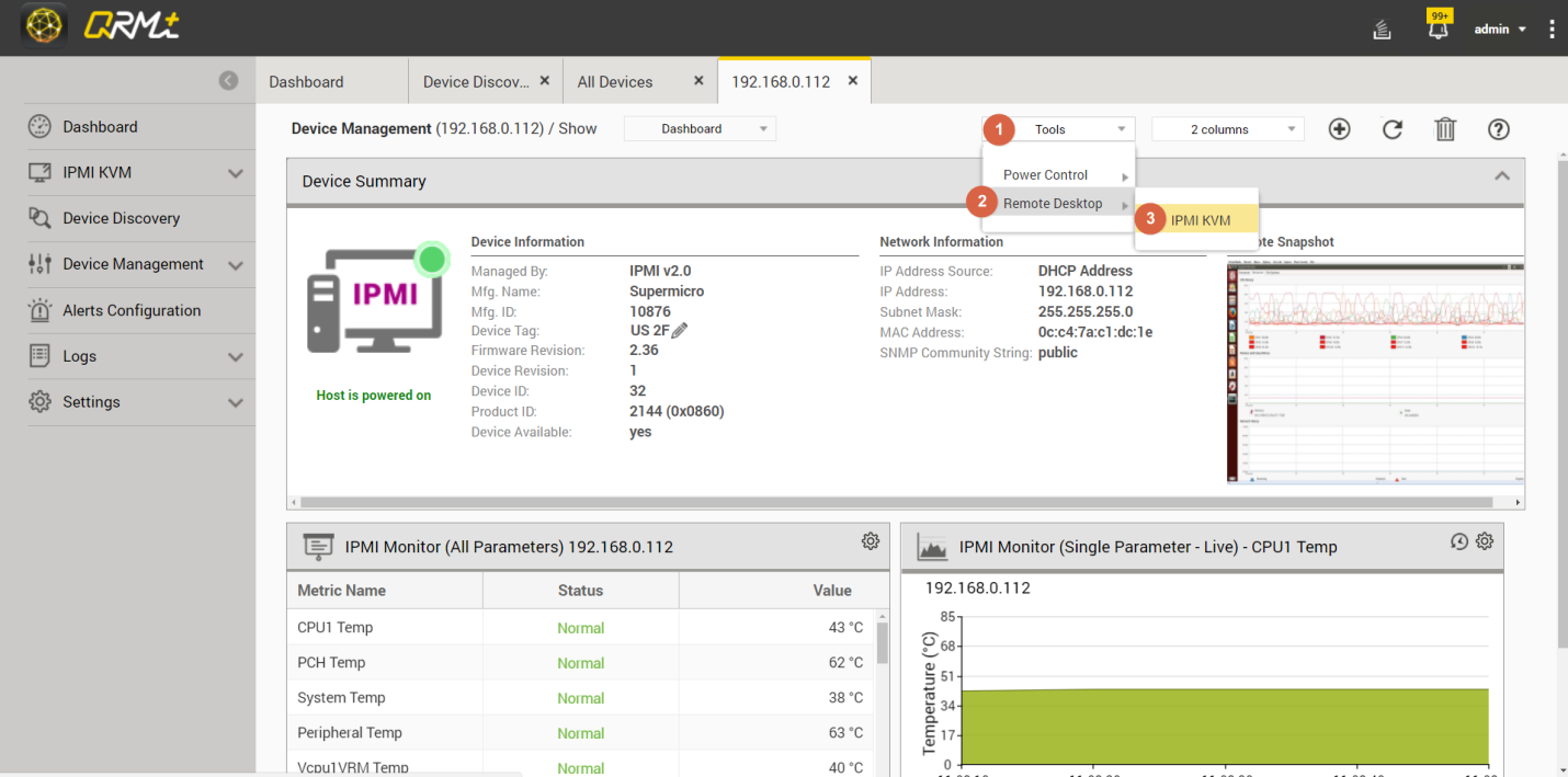 第 2 步:选择“远程桌面”>“IPMI KVM”。
