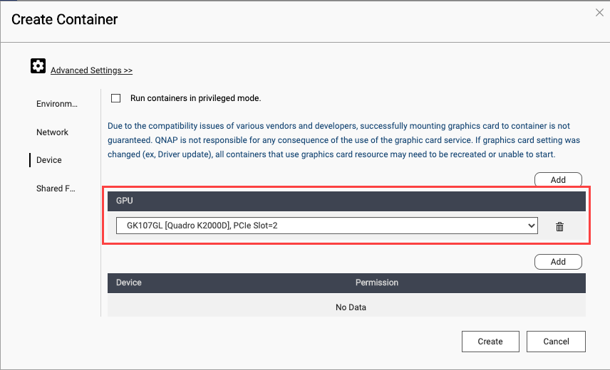 必须先在 NAS 上安装显卡,并将其分配给 Container Station,然后再安装 Caffe。