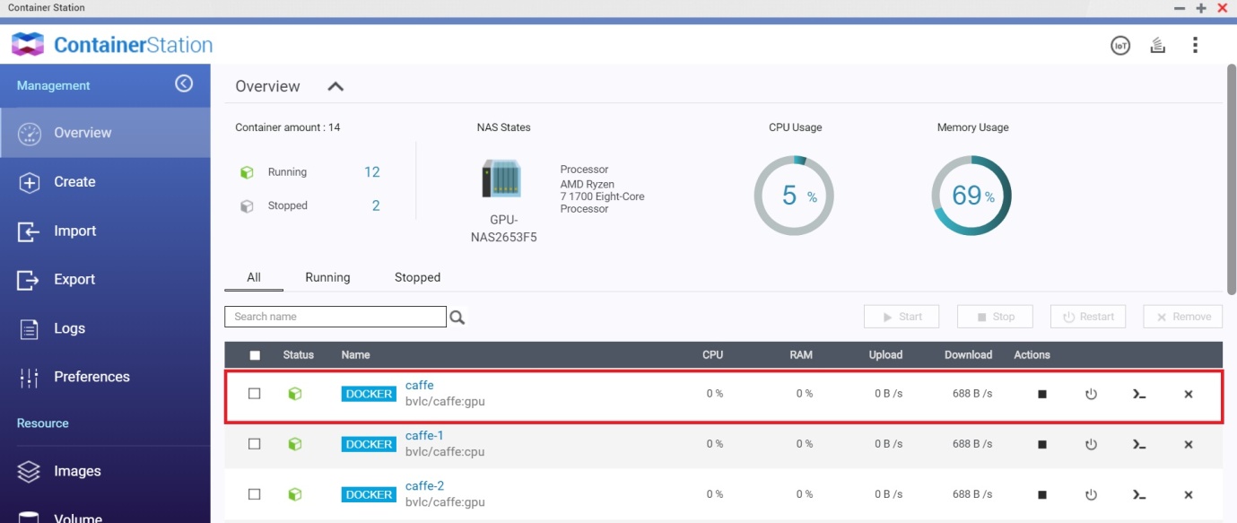 本教程介绍如何在 Container Station 中使用 Caffe。