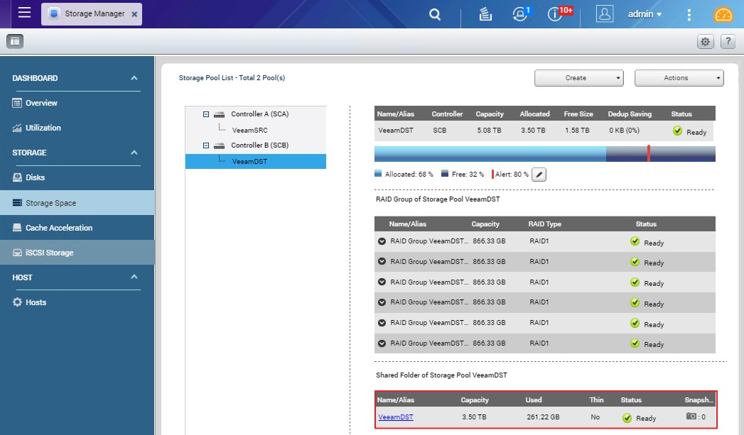 Backup destination pool | VeeamDST | RAID 10 pool at controller B |
