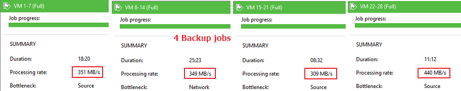 For example: If you have 100 backup jobs, then 1000 VMs need to be backed up.