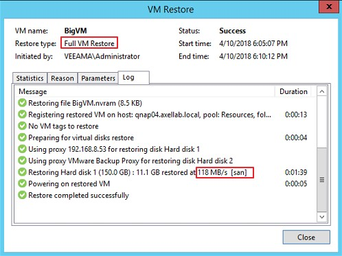 - In our internal tests (10G LAN), restore operations were performed while running 4 backup jobs at the same time. The restoration performance can maintain over 100 MB/s.