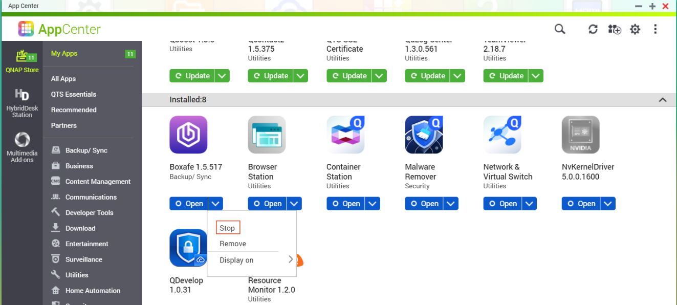 如果您一直在 QTS 5.0.x 上使用 Boxafe,然后降级至 QTS 4.5.x,Boxafe 将无法运行。
