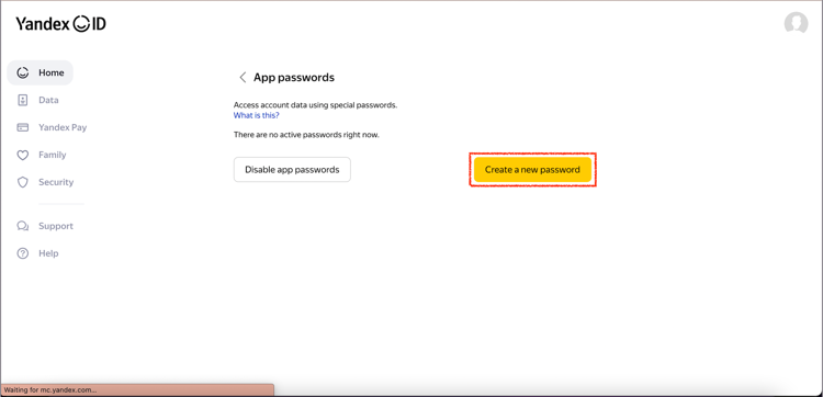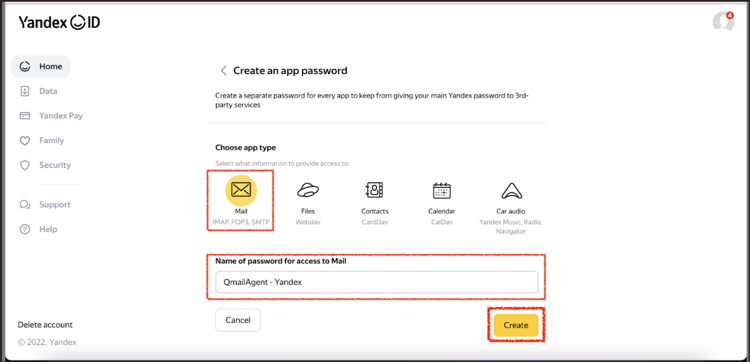 - Enter a name to identify the password (for example: QmailAgent - Yandex).