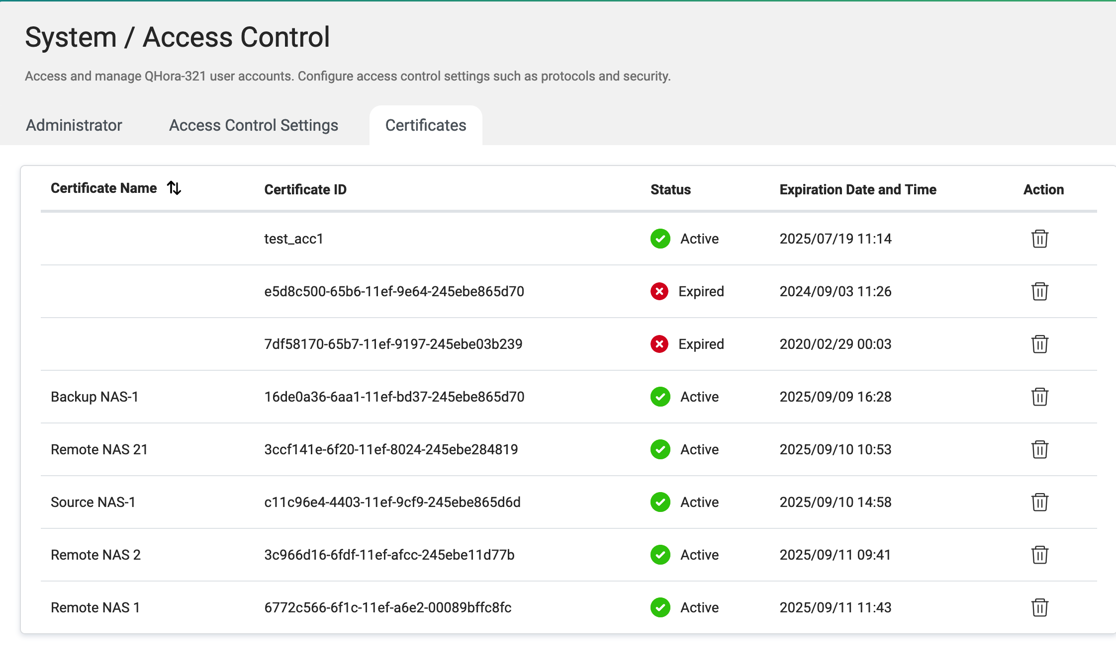 - 导航到“System”(系统)>“Access Control”(访问控制)>“Certificates”(证书)。