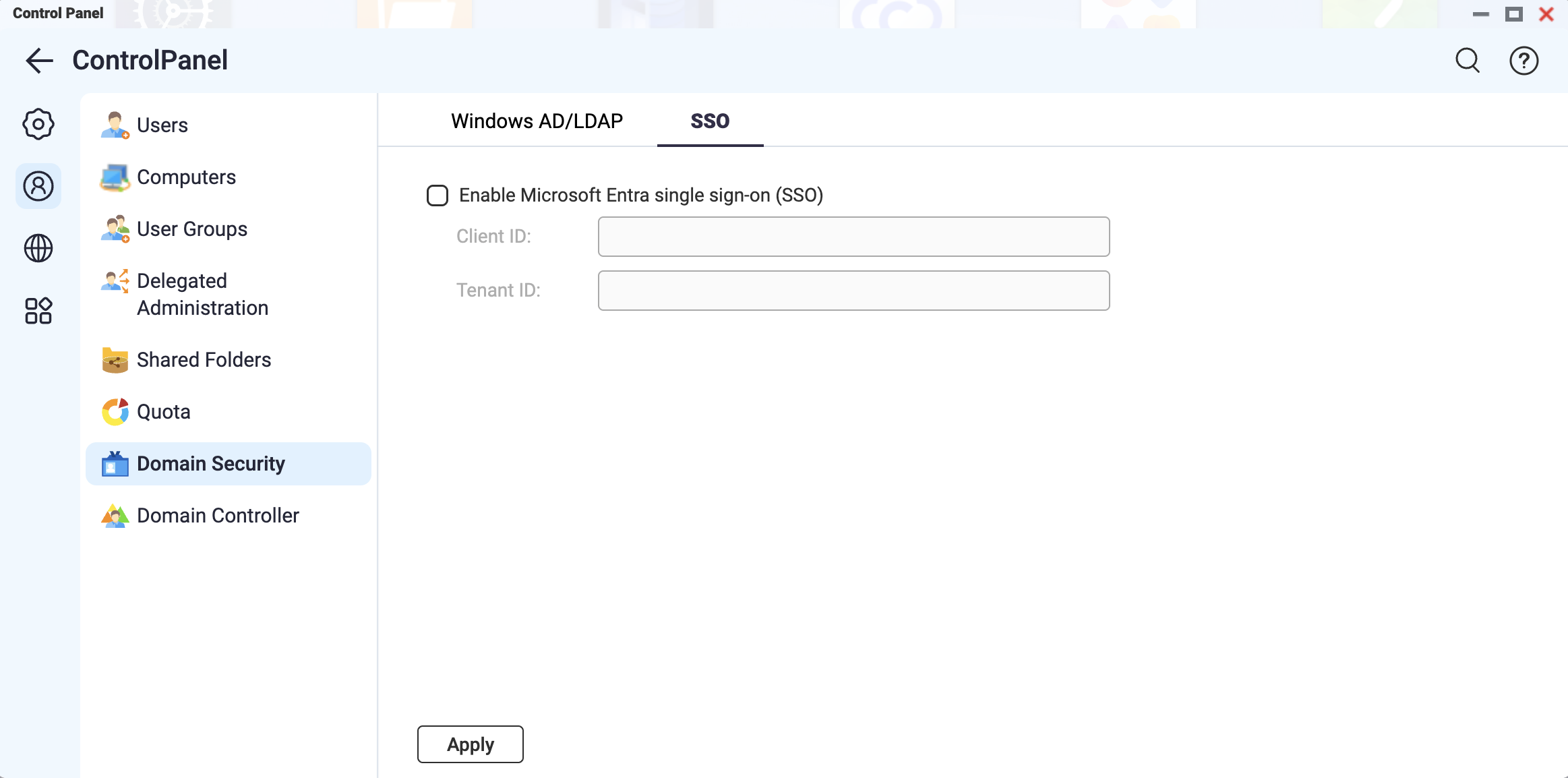 - Go to Control Panel > Privilege > Domain Security > SSO.