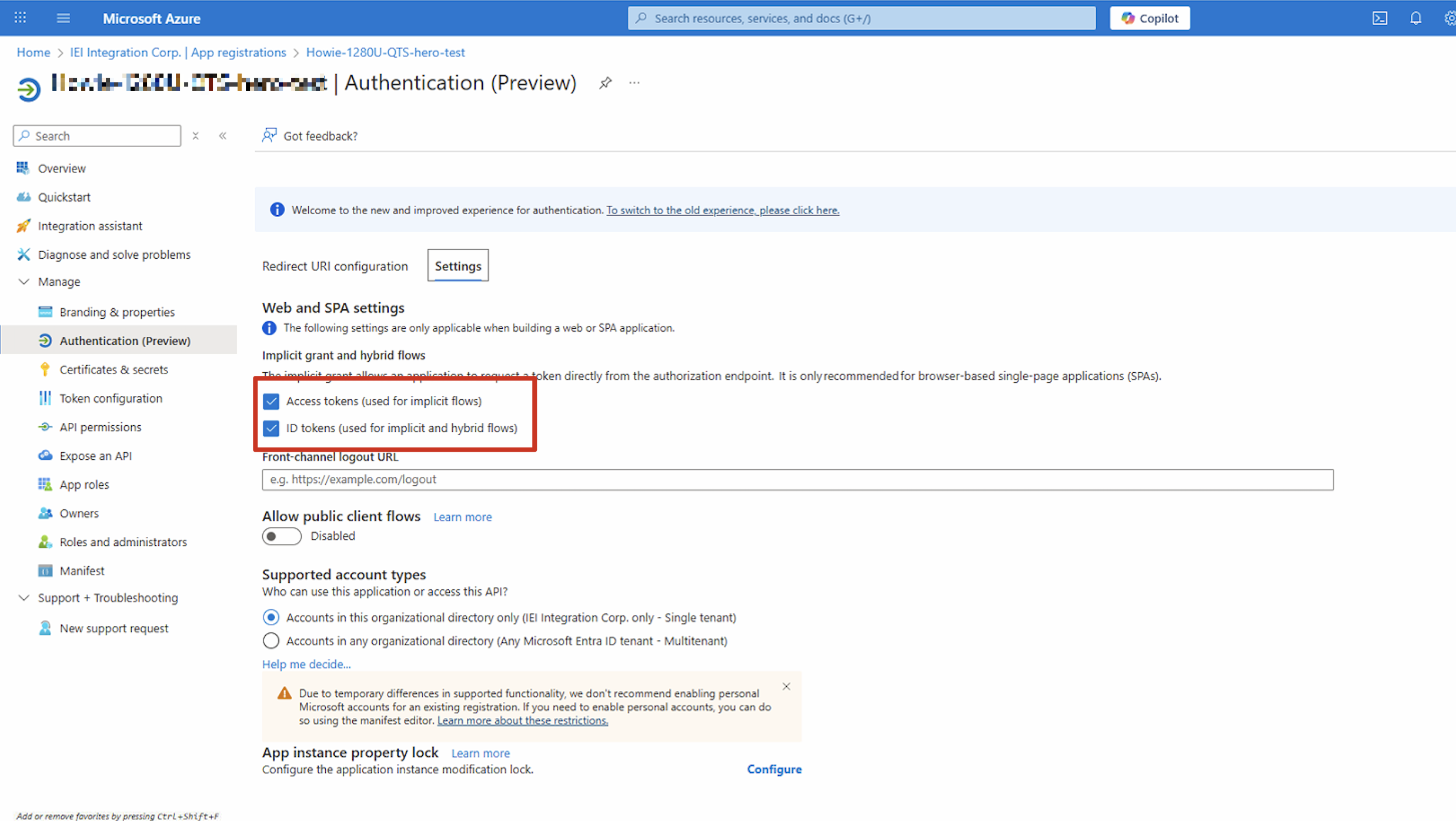 - Go to Manage > Authentication (Preview).